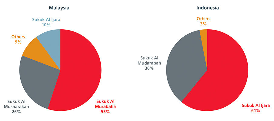 Indonesia’s first corporate sukuk was sold in 2002, more than a decade after the first corporate issue in Malaysia. In absolute terms, Indonesia's total outstanding corporate sukuk was around USD1 billion at the end of 2017, while the Malaysian equivalent exceeded USD100 billion.