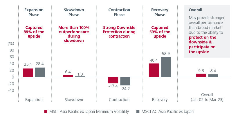 When it comes to diversifying exposure to high-growth, volatile technology companies, investors could turn their attention to defensive stocks which can provide potential downside protection. Over the full market cycles, stocks with lower volatility and correlation tend to deliver returns comparable to the broader equity market, but with reduced fluctuations and lower drawdowns, as shown in Fig. 6.